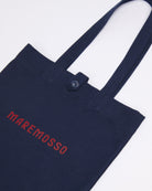 Tote bag unisex in 100% cotone nel caratteristico blu mediterraneo, con logo stampato a mano. Versatile e capiente, è perfetta sia per una giornata in barca che per un giro al mercato. Il dettaglio distintivo è la chiusura, che riprende l’iconico passante Maremosso, unendo funzionalità e stile.
