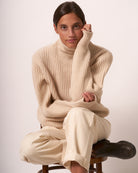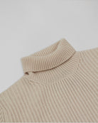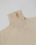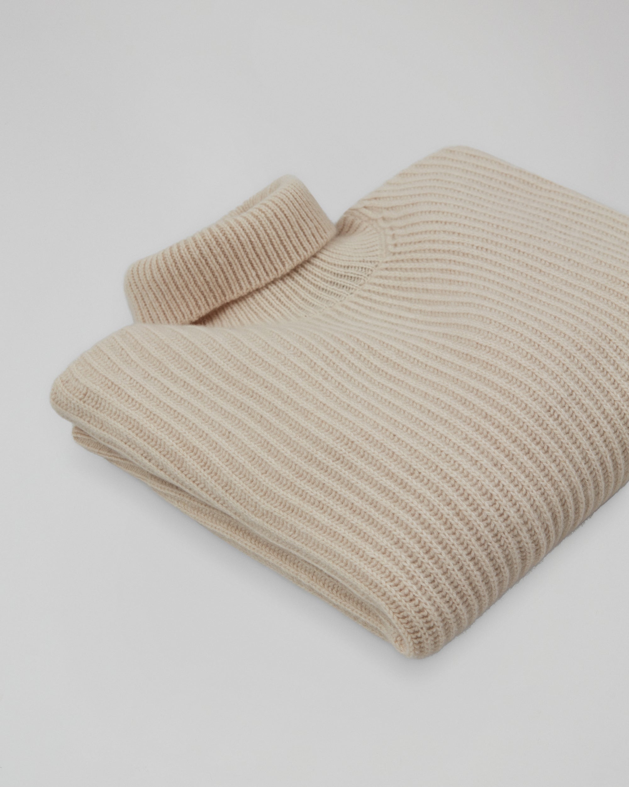 Golf a collo alto 90% lana, 10% cashmere di altissima qualità, lavorato a coste.