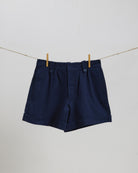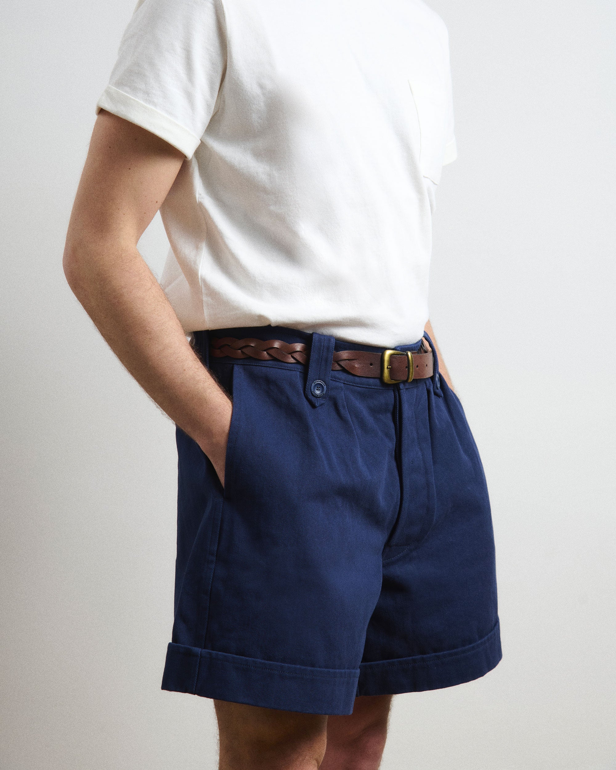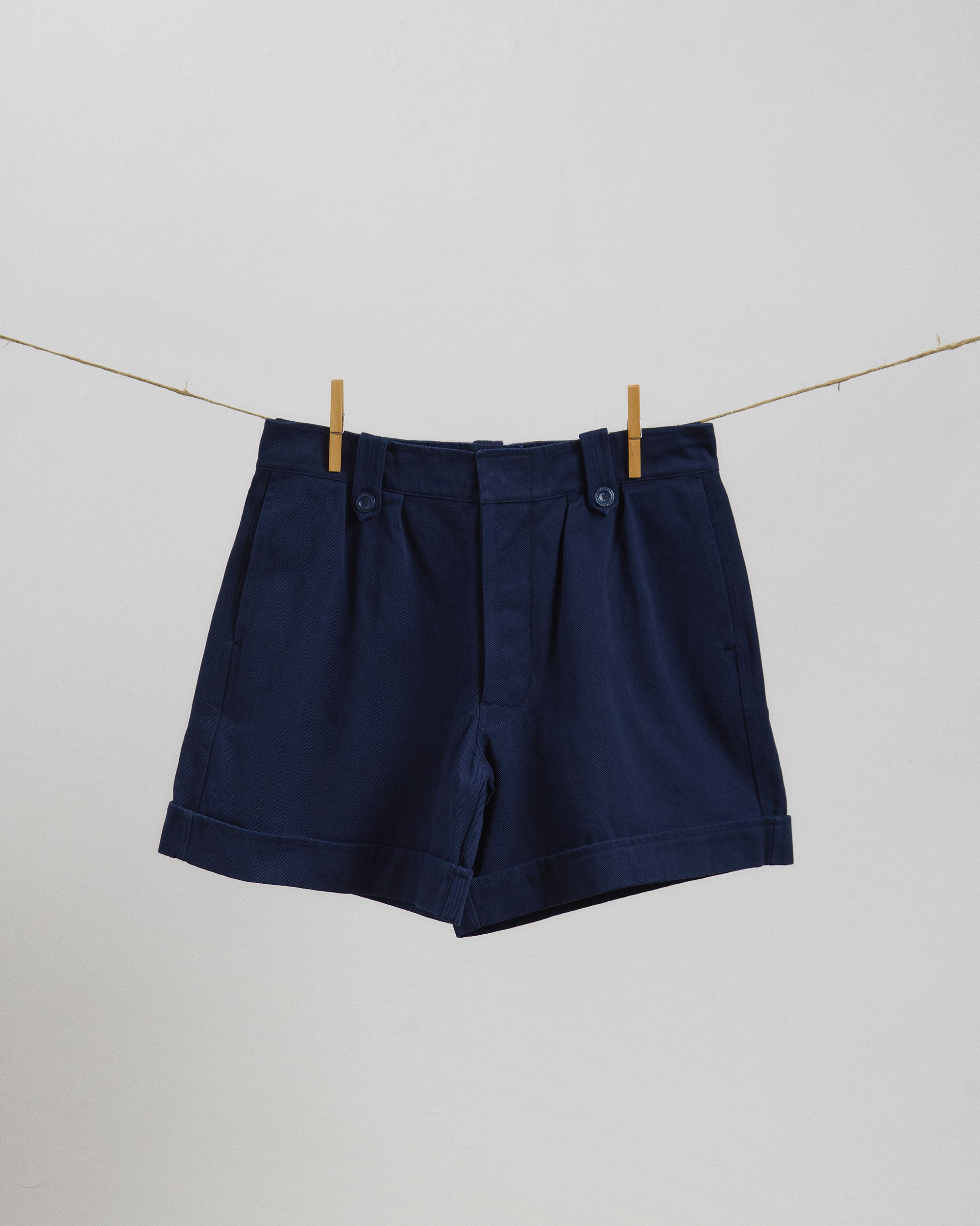 Bermuda a vita alta in 100% cotone, rifinito con cuciture ton sur ton e chiusura con bottone in corozo a scomparsa. Vestibilità normale, due tasche laterali, passanti in vita con bottoni e risvolto, caratteristica distintiva di tutti i bermuda Maremosso.