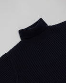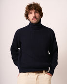 Golf a collo alto 90% lana, 10% cashmere di altissima qualità, lavorato a coste.