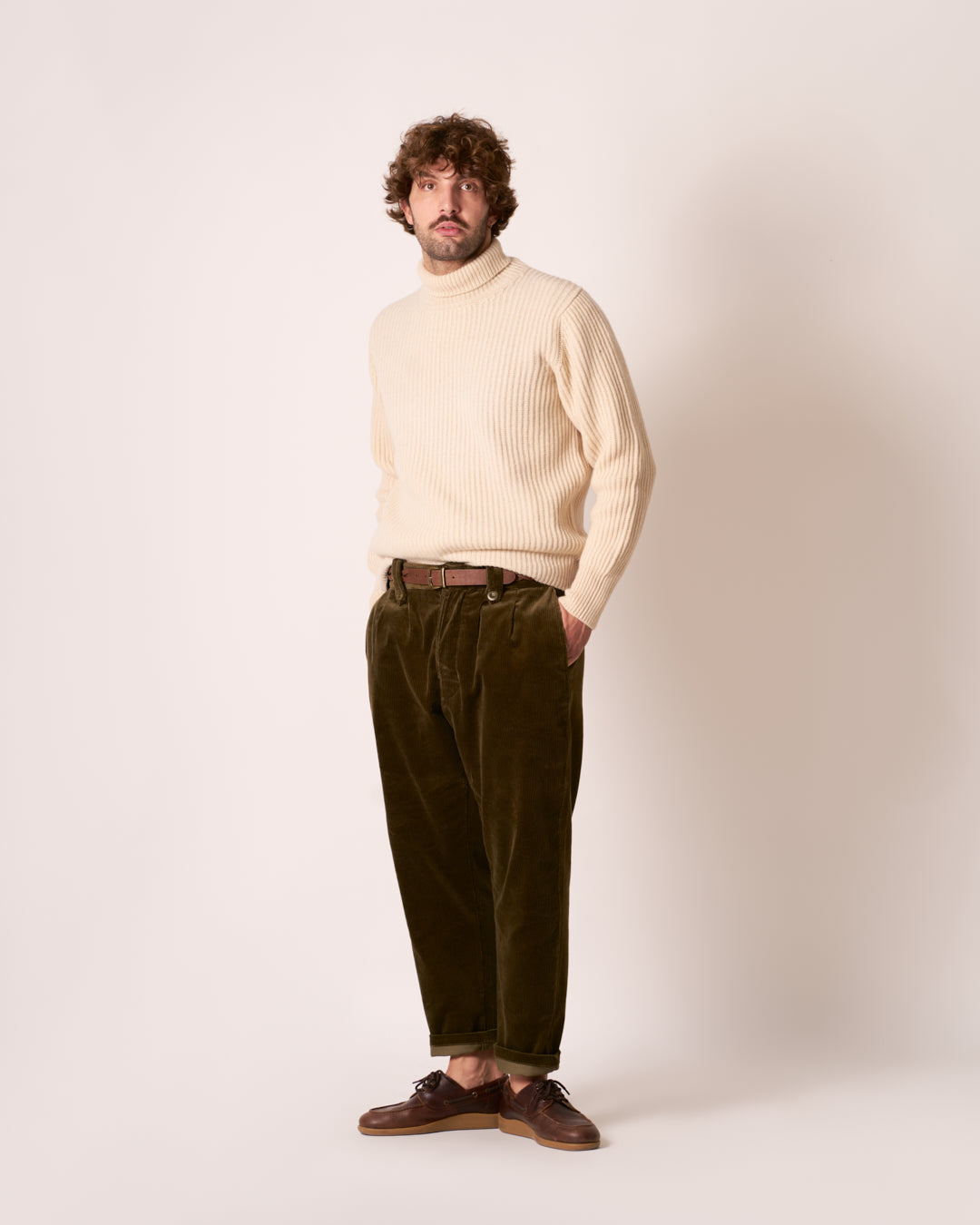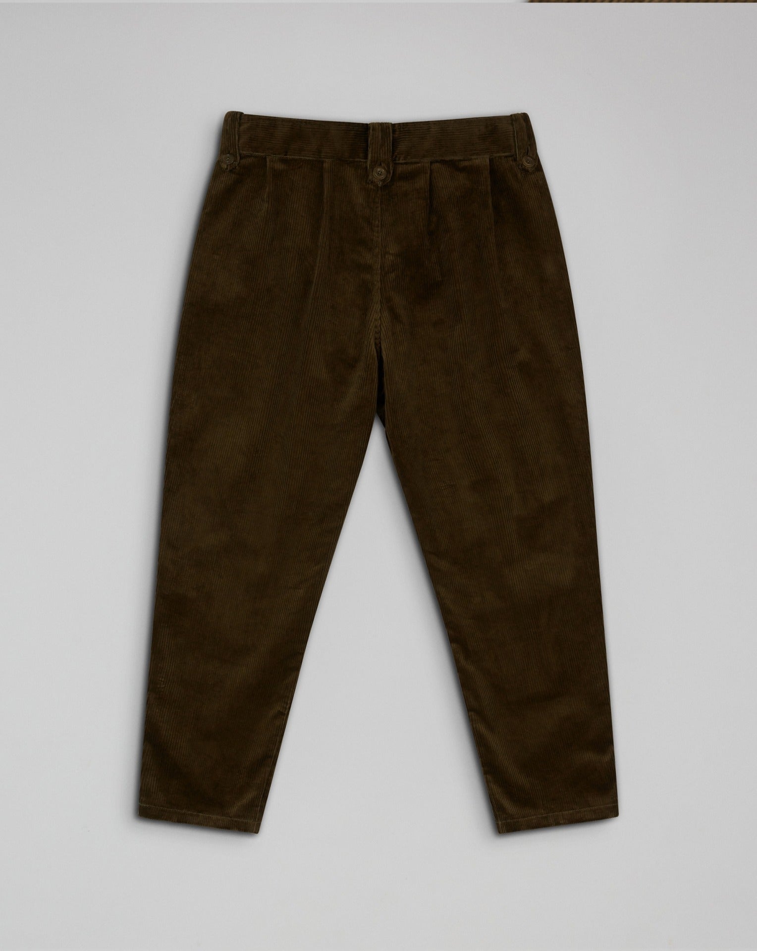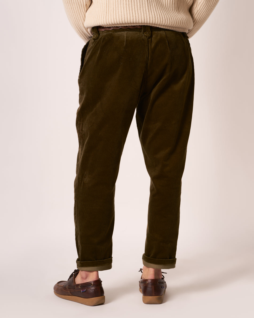 Pantalone in velluto di altissima qualità, rifinito con doppia pinces e chiusura con bottone in corozo a scomparsa. Vestibilità normale, due tasche laterali, i pantaloni in velluto Maremosso possono essere indossati con o senza risvolto.