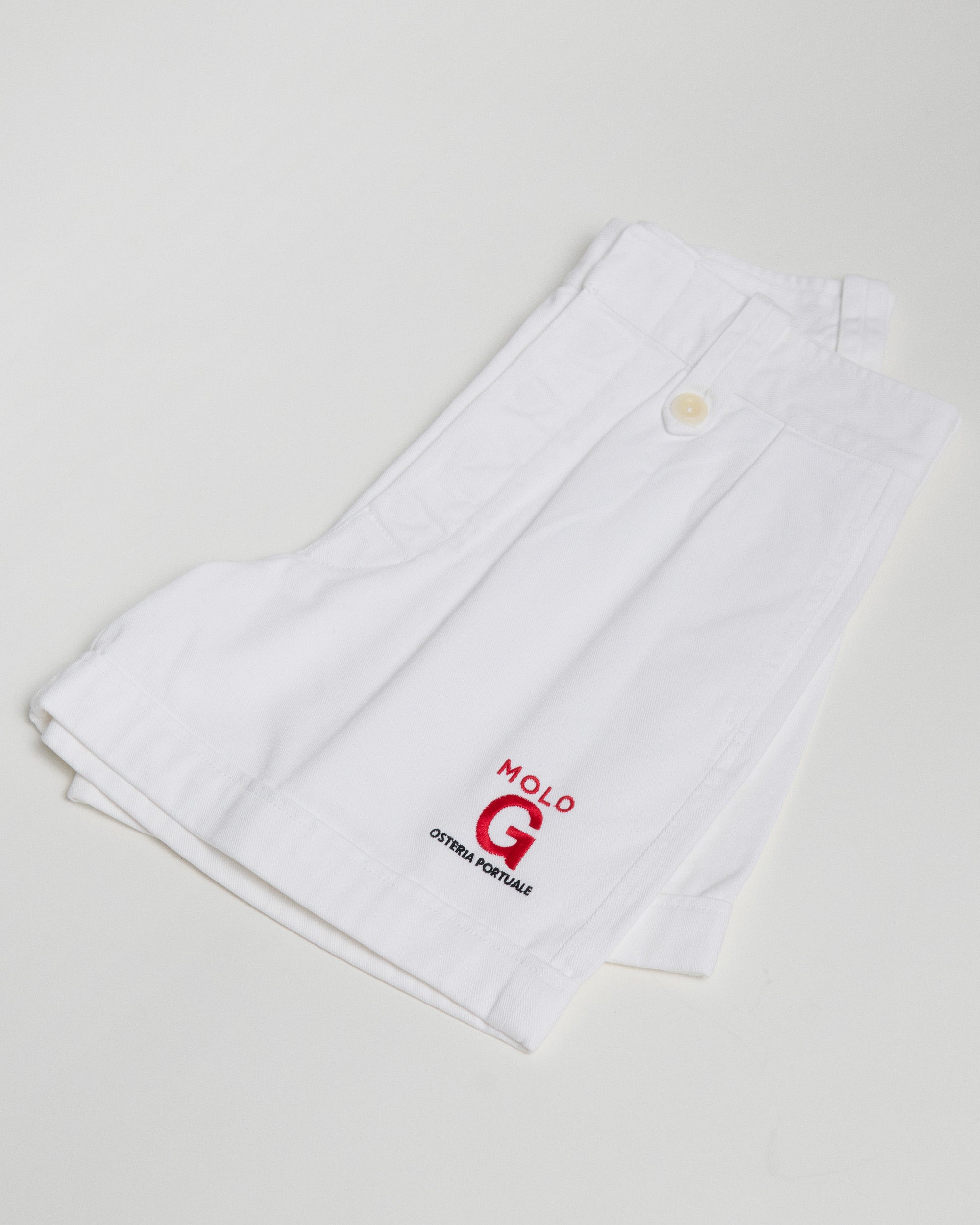 For Molo G, a port tavern in the ESAOM shipyard in Portoferraio, we created a customized supply of our iconic Bermuda shorts for the staff and for sale at the tavern.